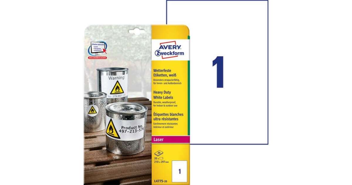 Weatherproof Avery Laser Printer Labels: 20 A4 Sheets, White Polyester