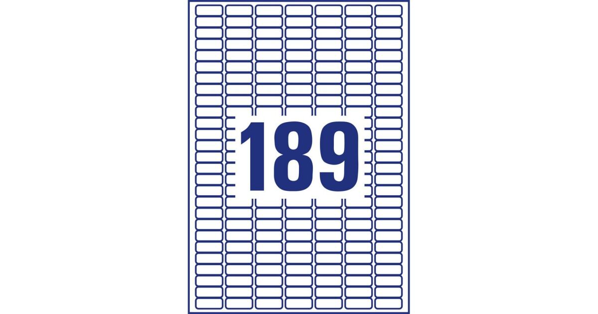 Label sticker, 25,4 x10mm, universal retractable, 189 labels/sheet, 25 sheets/box, Avery white description of