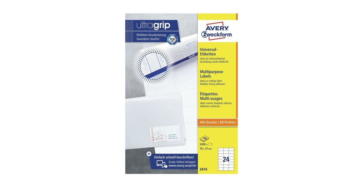 Avery Zweckform 3474 Universal Labels: Perfect Printing and Strong Adhesion