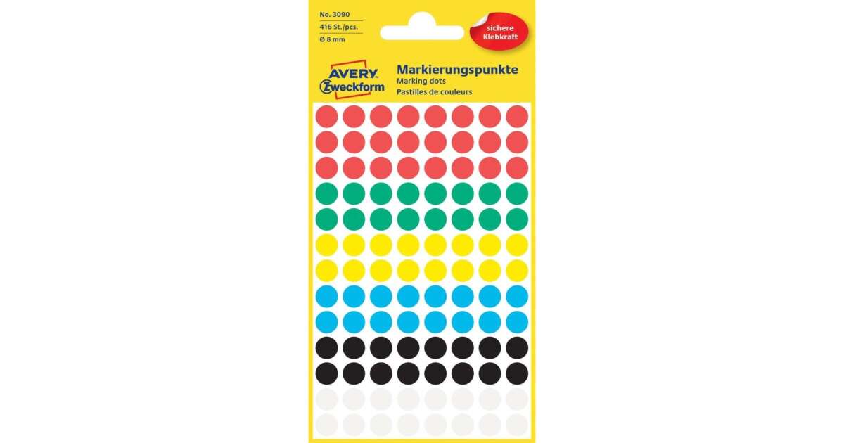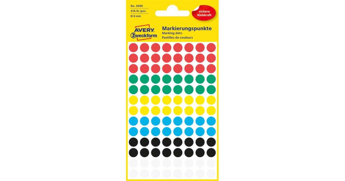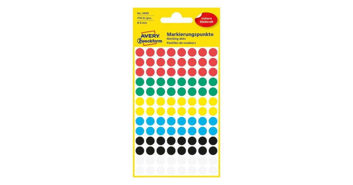 These colorful, 8 mm Avery Zweckform dots are ideal for organizing and marking documents, pictures, or any other materials. With 6 vibrant colors, you can easily distinguish important information.