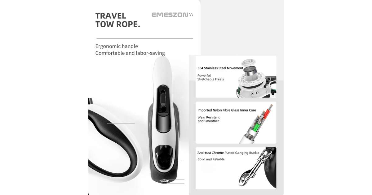 The leash is made of durable ABS plastic and stainless steel, making it long-lasting and reliable. The ergonomic handle provides a comfortable grip, even on longer walks.