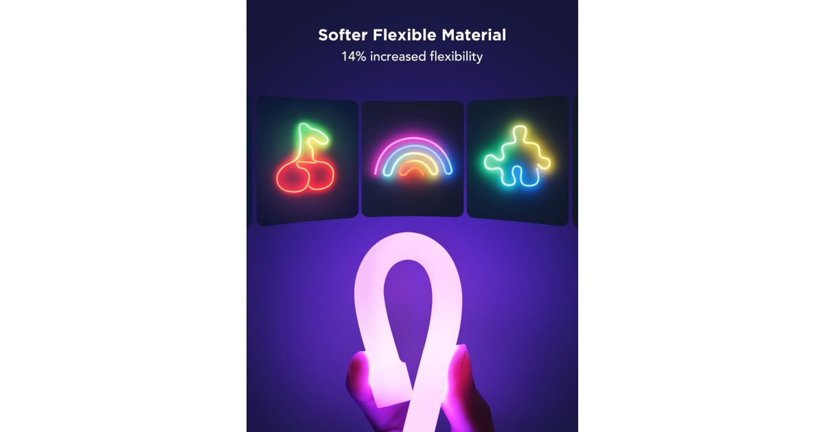 The 2nd generation Govee Neon LED Strip Lights are even better than their predecessor! Thanks to the softer material, they're 14% more flexible and easier to handle. The shape recognition feature takes customizable lighting to a whole new level. Matter compatibility ensures seamless integration with your smart home system.