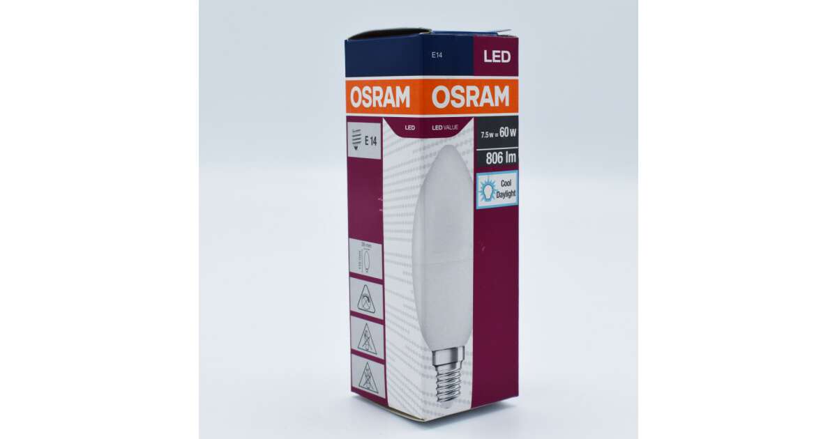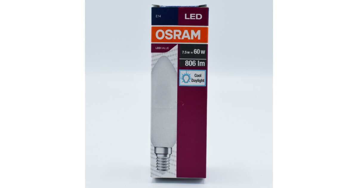 Osram E14 LED Value candle 7.5W 806lm 6500K daylight - replace 60W bulb description of