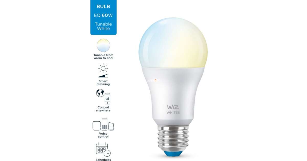 Easily smarten up your home lighting with this WiZ Wi-Fi LED bulb! The 8W, 806 lumen light output provides pleasant, adjustable light (2700-6500K), and the CRI90 guarantees realistic colors. Perfect for any room, whether you're reading, having dinner, or relaxing.