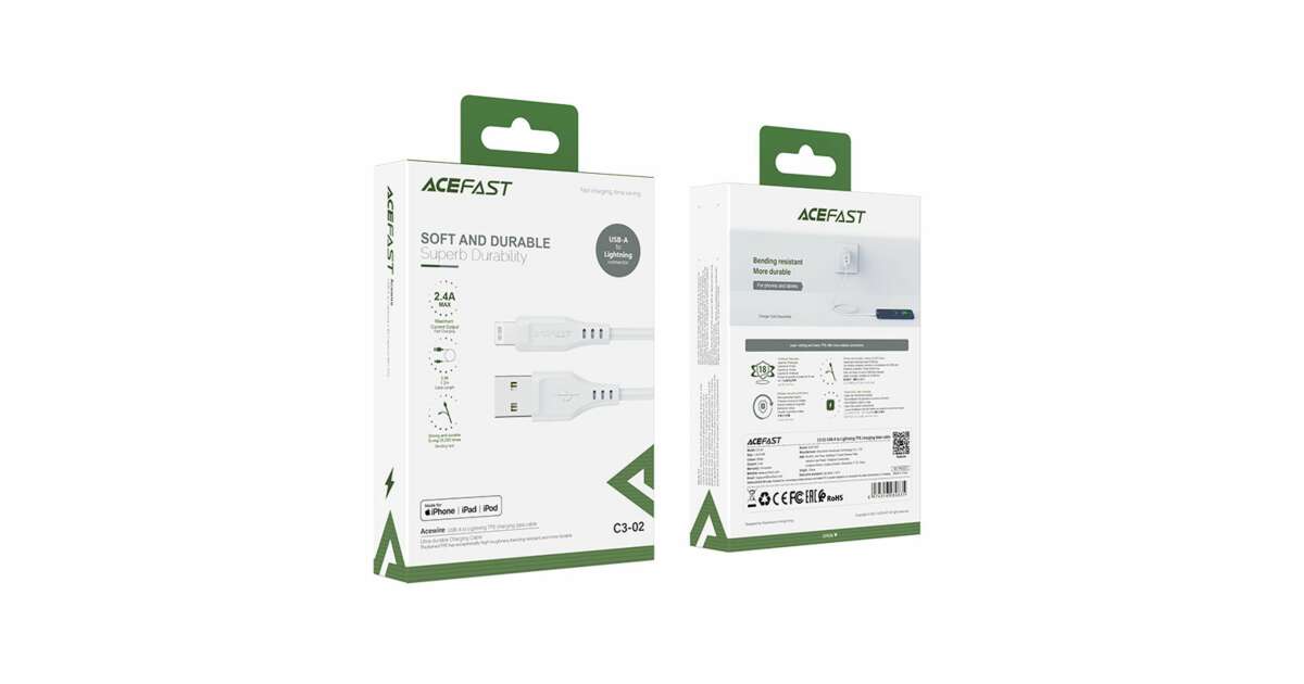 Acefast C3-02 Data and Charging Cable, MFI, USB / Lightning, 2.4A, 1.2m, White description of
