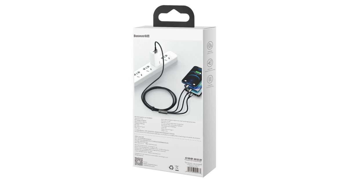 Baseus 3-in-1 Fast Charging Cable: Charge 3 Devices Simultaneously! ⚡