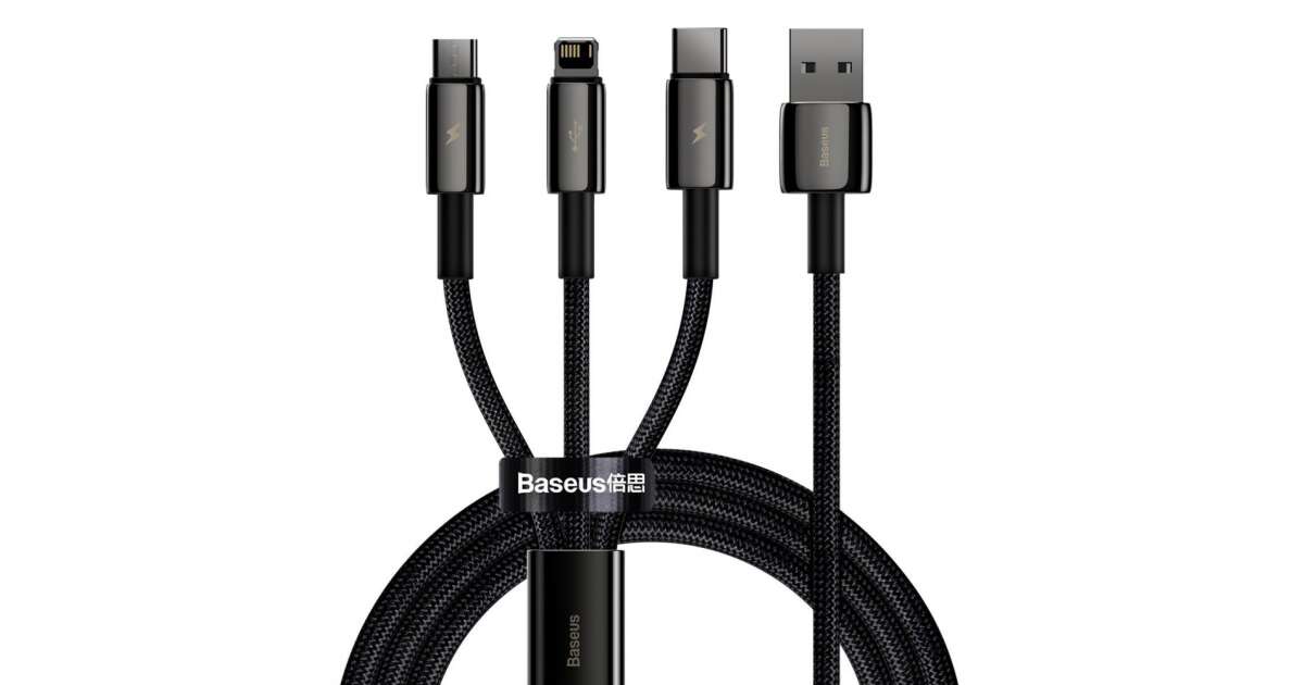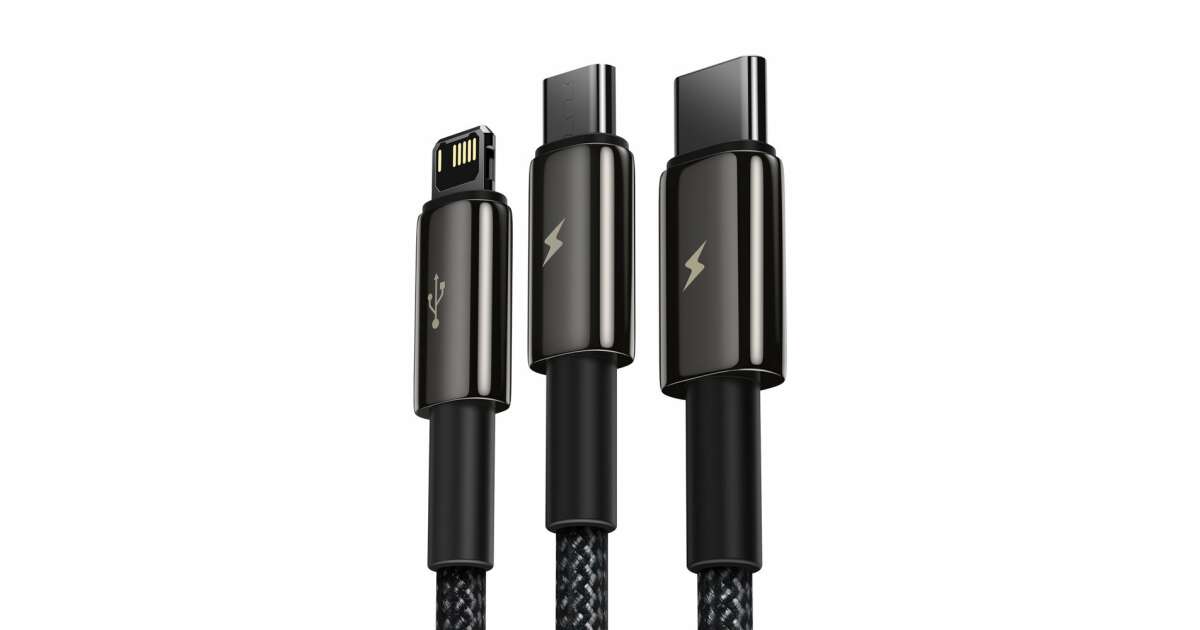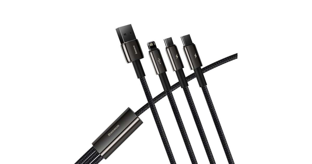 Baseus Tungsten Gold 3-in-1 USB cable, USB Micro USB / USB-C / USB-C / Lightning, 3.5 A, 1.5 m (black) description of