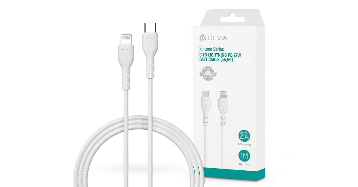 Devia USB Type-C - Lightning Data and Charging Cable with 1 m Cable - Devia Kintone Series Type-C to Lightning PD Cable - 27W - white description of