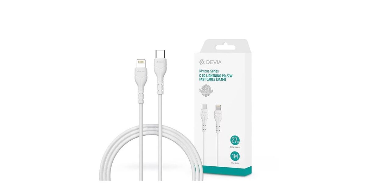 Devia USB Type-C - Lightning Data and Charging Cable with 1 m Cable - Devia Kintone Series Type-C to Lightning PD Cable - 27W - white