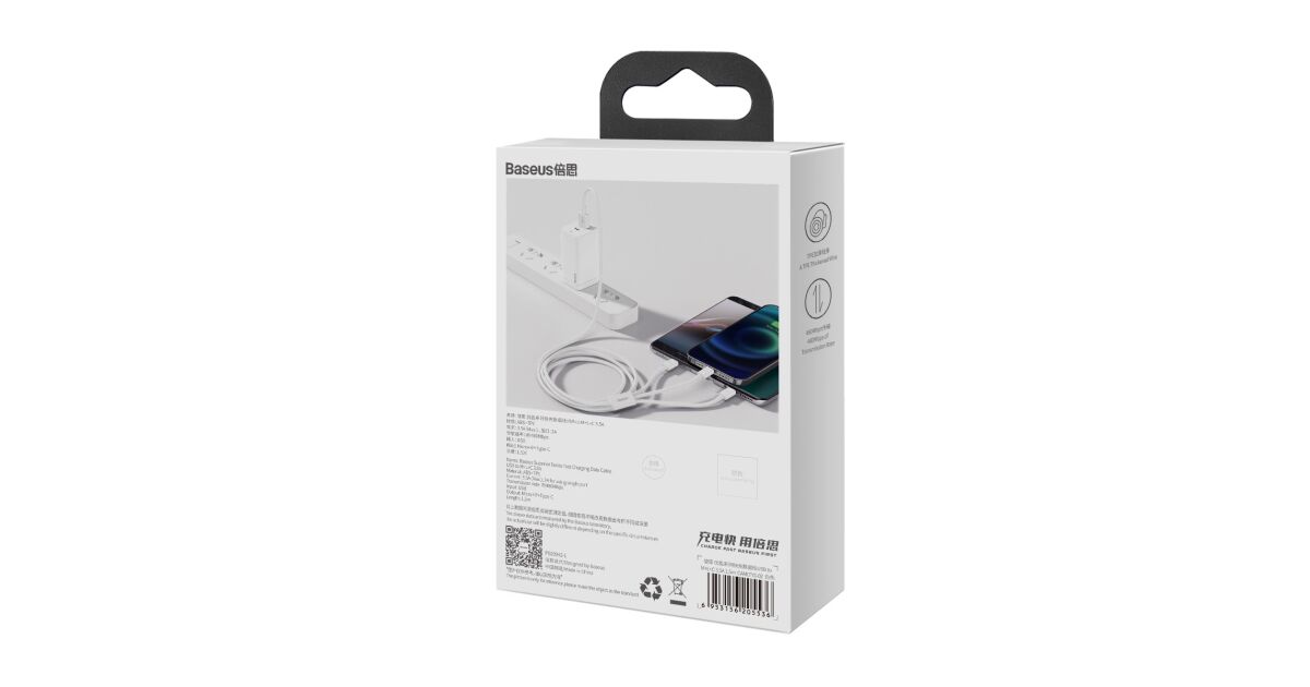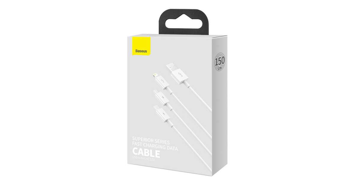 Quick Charge USB to M+L+C Baseus Superior Data 3.5A 1m (White) description of