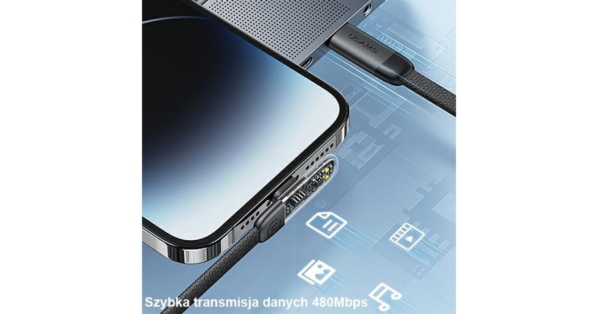 This cable not only charges your device quickly but also looks stylish. The modern design and high-quality materials guarantee long-term satisfaction. Thanks to its angled design, it's comfortable to use and doesn't interfere with using your phone while charging. Try it now!