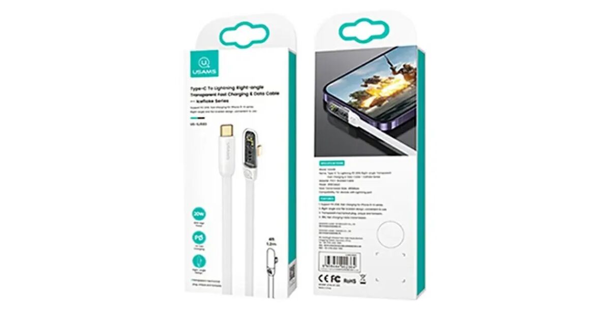 USAMS Angled USB-C to Lightning PD 20W Fast Charging Cable Iceflake Series 2m White SJ586USB02 (US-SJ586) description of