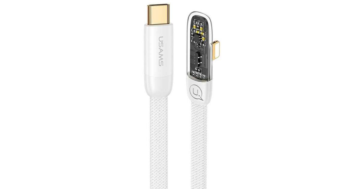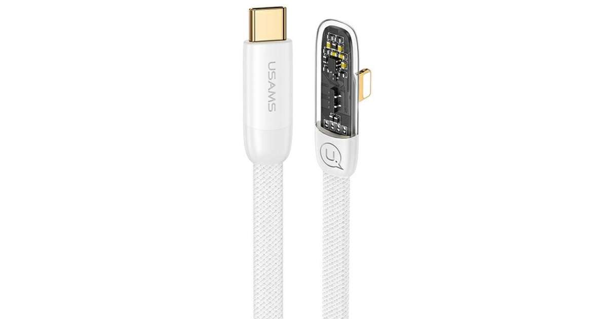 USAMS Angled USB-C to Lightning PD 20W Fast Charging Cable Iceflake Series 2m White SJ586USB02 (US-SJ586)
