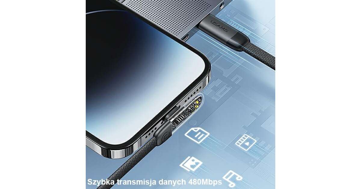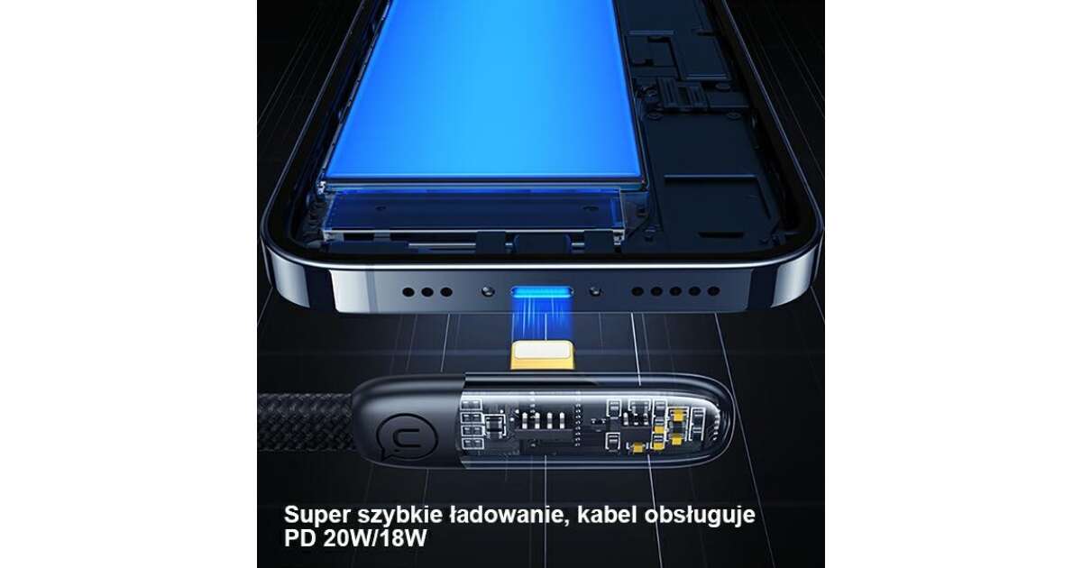 This 2-meter USAMS Iceflake Series USB-C to Lightning cable is perfect for fast and safe charging of your iPhone or iPad. The cable has a unique, transparent design that lets you see the internal structure. Enjoy 20W Power Delivery (PD) fast charging, which significantly reduces charging time.