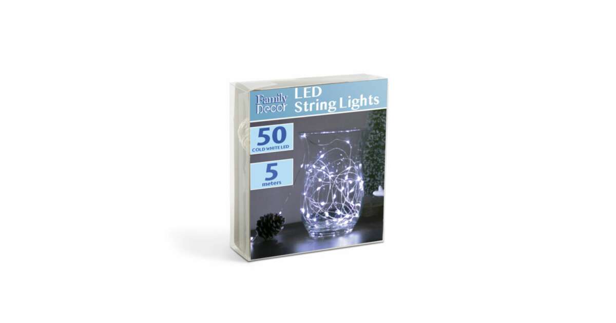 Create a cozy atmosphere in your home with this 5-meter string light featuring 50 cool-white LEDs! Thanks to its thin, flexible cable, it's easy to shape and practically invisible, so it can be placed anywhere. No need for a power outlet; the battery operation offers an economical and convenient solution.