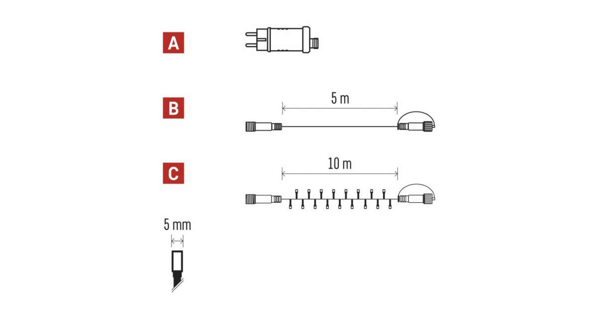 EMOS Basic Set for Connected String Lights, Standard, 10 m, outdoor, warm white, timer description of