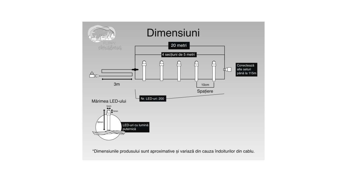 Create a truly festive atmosphere in your home with this 20-meter-long string of 200 blue LEDs! Its linear design makes it easy to put up on your Christmas tree, house walls, or even garden plants. Choose from 8 different light shows to always create the perfect mood.