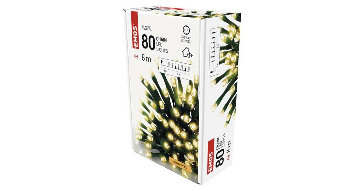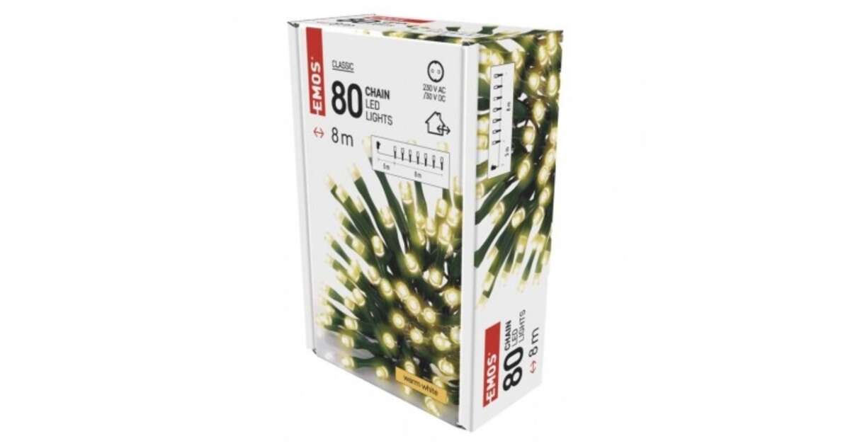 EMOS Christmas LED String Lights - 80 LEDs, 8 meters, Warm White