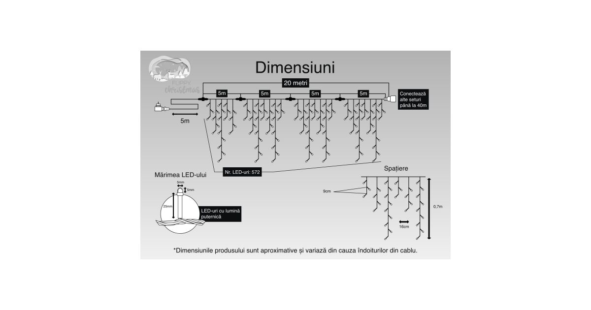 Flippy Christmas Icicle Lights - 20 meters, 572 blue LEDs ❄️