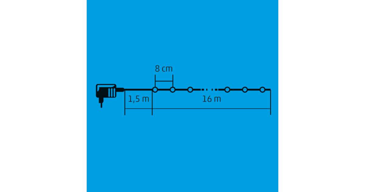 Home KII 200B/WW LED globe light string, 16 m / 200 warm white LEDs, fixed, green wire, power adapter, indoor description of