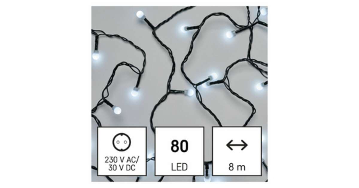 LED Christmas String Lights, Cherry Bulbs, 8 m, Indoor & Outdoor, Cool White, progr