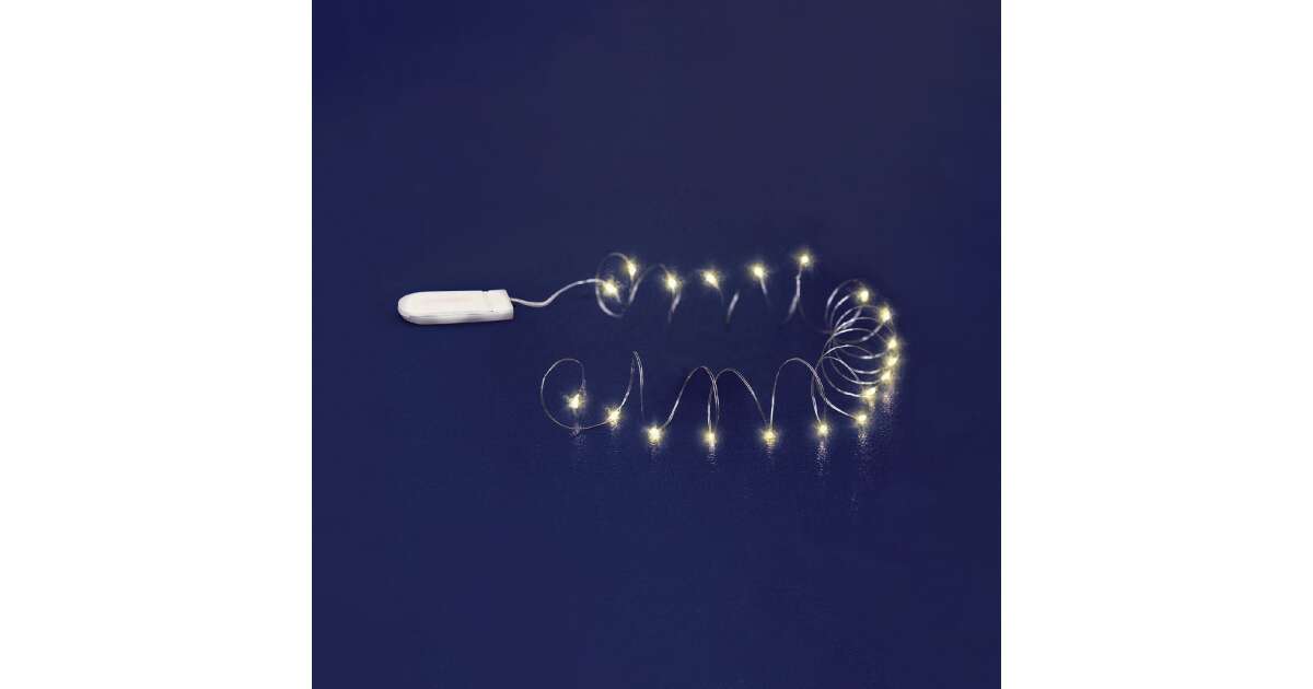 Create a cozy and magical atmosphere in your home with this string light featuring 20 warm white micro LEDs! Thanks to the thin, almost invisible wire, the glow of the lights takes center stage, discreetly yet spectacularly decorating your surroundings.
