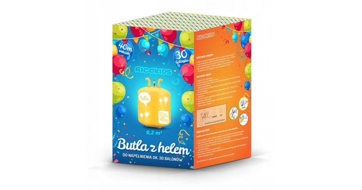 Ricokids 0,20m3 Helium bottle for inflating 30 balloons + 30pcs balloons and 40m of ribbon