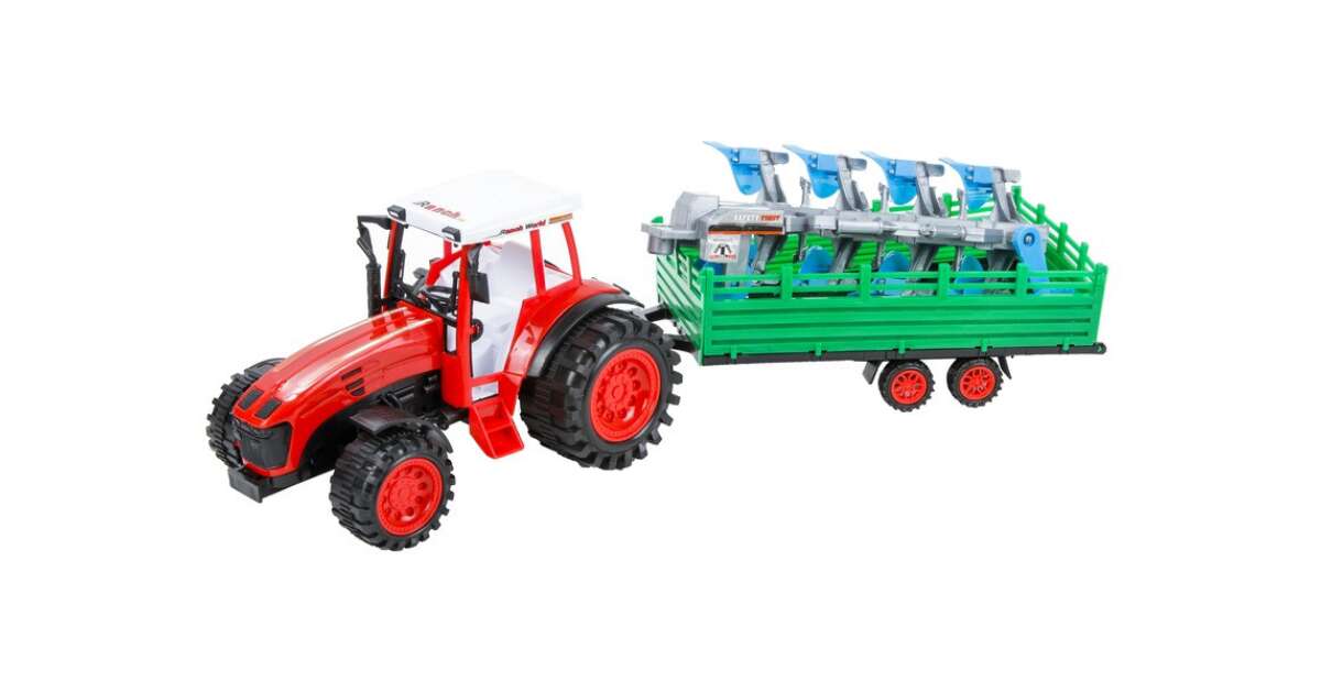 -Tractor with Plow and Trailer - 52 cm, various colors description of