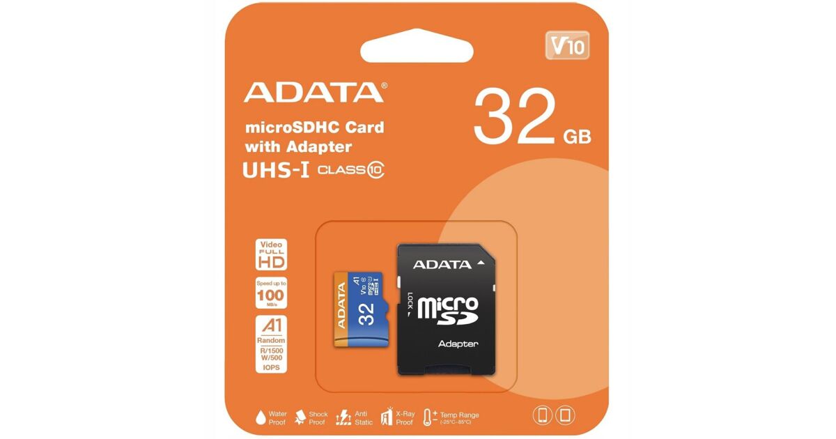 ADATA MicroSD card - 32GB microSDHC UHS-I Class10 A1 V10 (R/W: 100/20 MB/s) + adapter description of