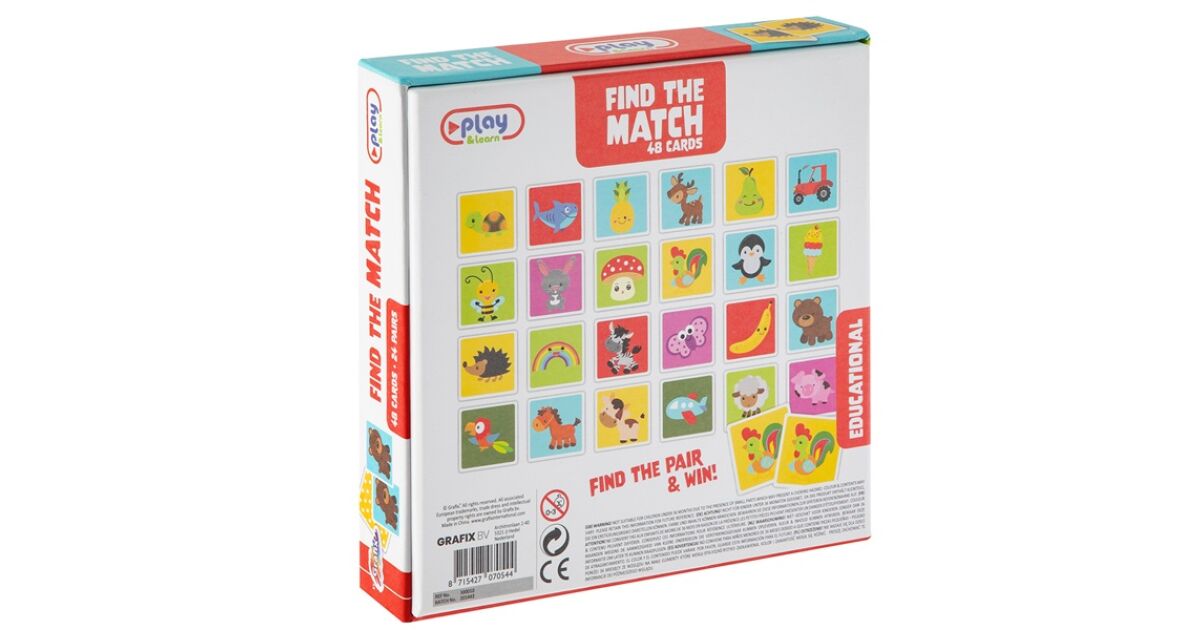 Grafix Find the Match Memory Game for Toddlers - Educational Game with Fun Animals 🐻🐷🐔