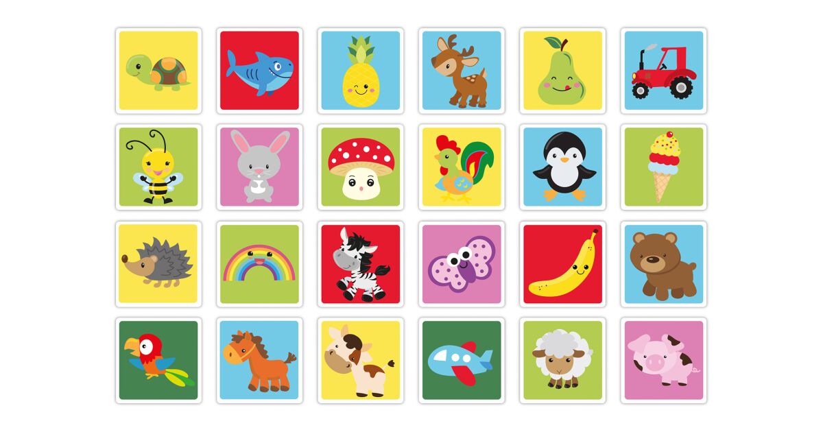 This fun memory game is perfect for toddlers from the age of 2! The colorful cards feature cute animals and fruits, helping to develop their memory and visual recognition. The simple rules are easy to learn, so little ones can play independently.
