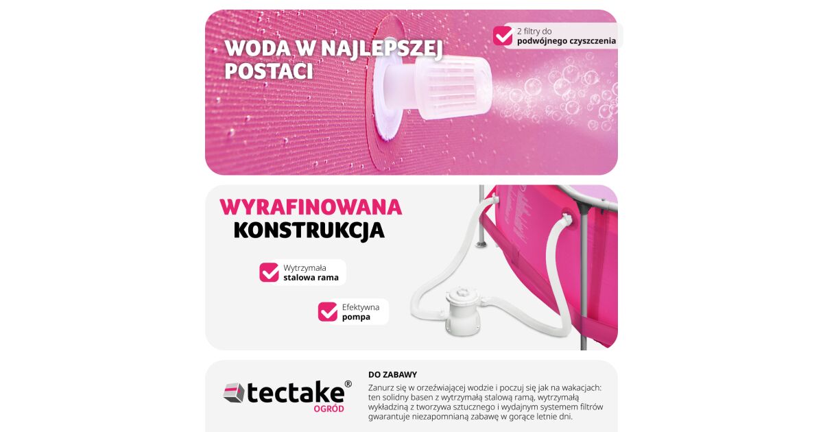 This family pool from TecTake is perfect for a summer splash in your backyard. With a diameter of 360 cm and a height of 76 cm, it offers plenty of space for the whole family to have fun. Quick and easy assembly lets you enjoy the water in no time.