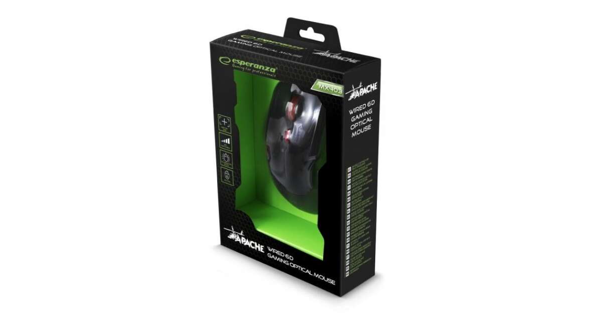 Esperanza EGM403R APACHE 6D USB red wired optical gamer mouse description of