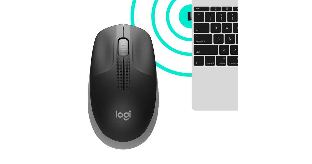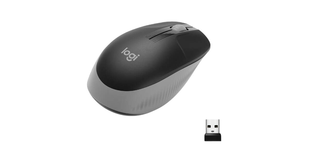 Logitech Mouse - M190 (Wireless, Full-size, Optical, USB, Medium Gray-Black)