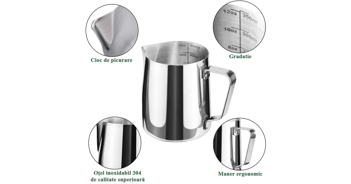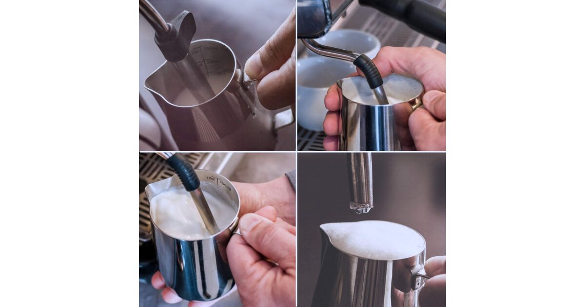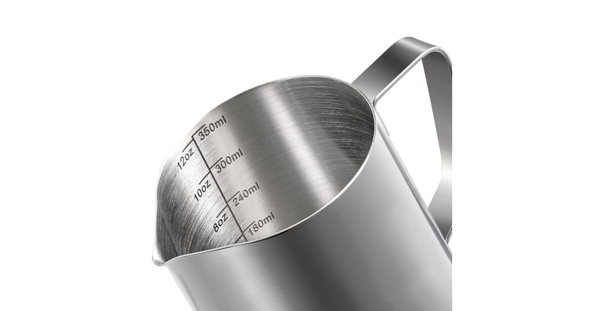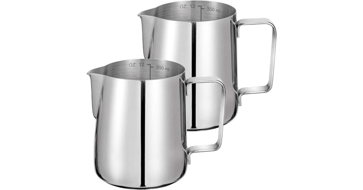 - 2 x 350 ml pitchers: enough milk for frothing multiple coffees.