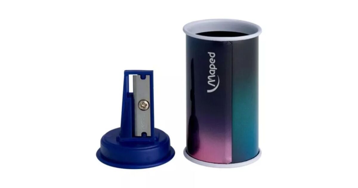 This Maped Nightfall pencil sharpener isn't just practical, it's stylish too! The metallic, colorful design will brighten up any pencil case, and the durable metal body ensures it'll last a long time. Ideal for school, home, or the office.