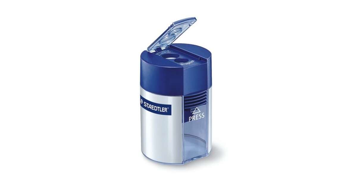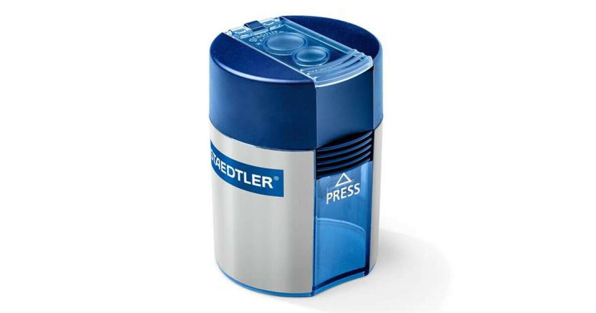 This STAEDTLER 512 double hole pencil sharpener is perfect for everyday use. It has two holes, so you can easily sharpen both standard and thicker pencils. Thanks to the built-in container, pencil shavings won't scatter, keeping your sharpener clean.