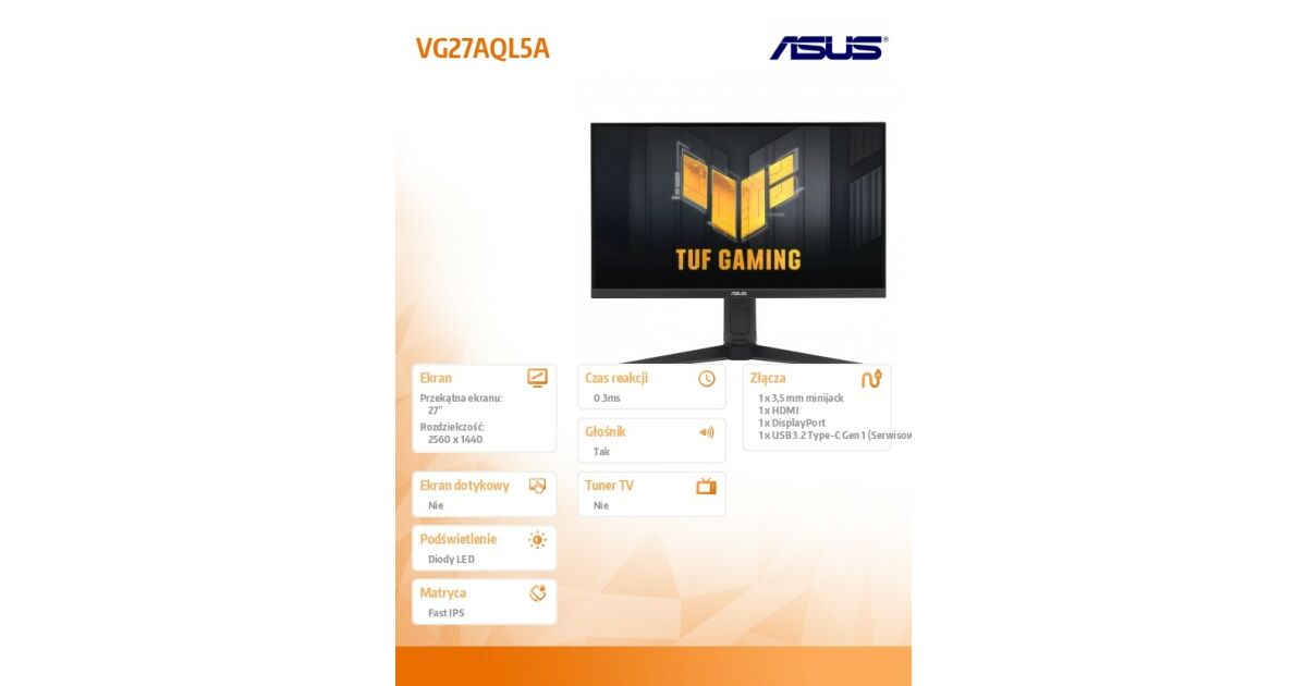 Asus TUF Gaming VG27AQL5A: Immerse yourself in gaming with stunning QHD resolution and lightning-fast response time! 🚀