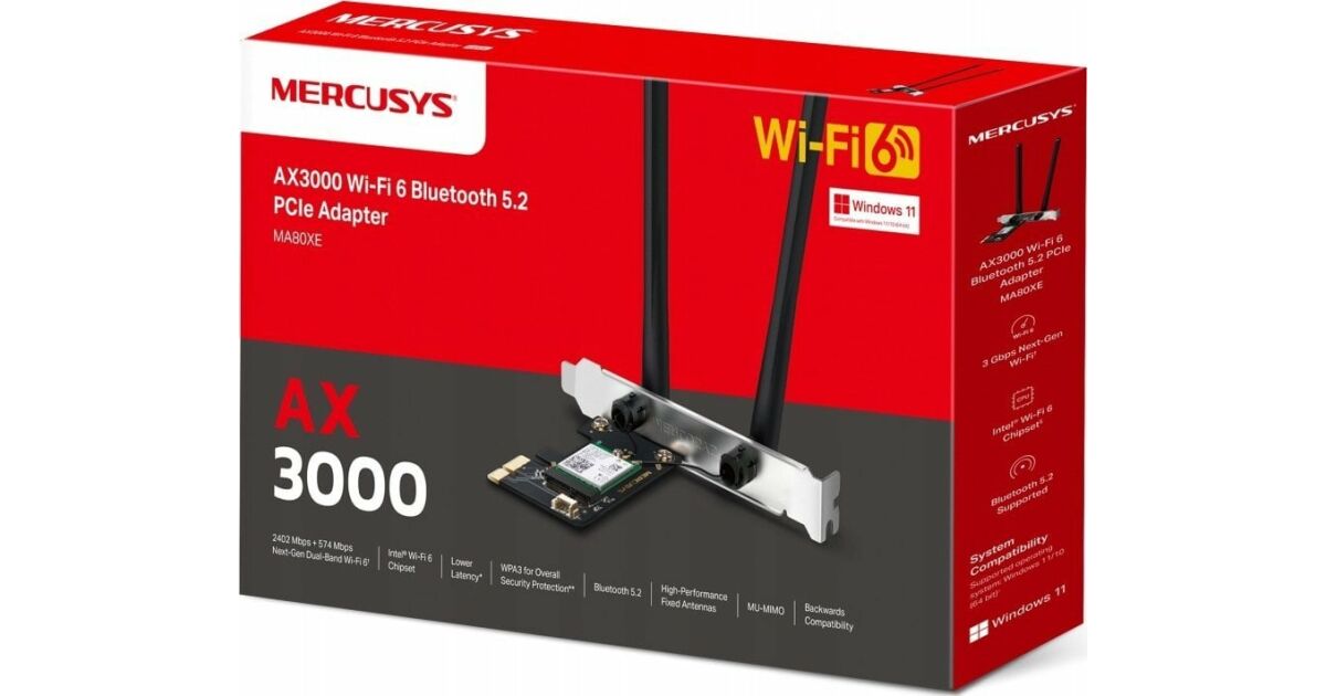 - AX3000 Wi-Fi 6 Bluetooth 5.2 PCIe adapter (MA80XE)