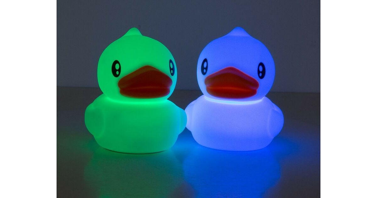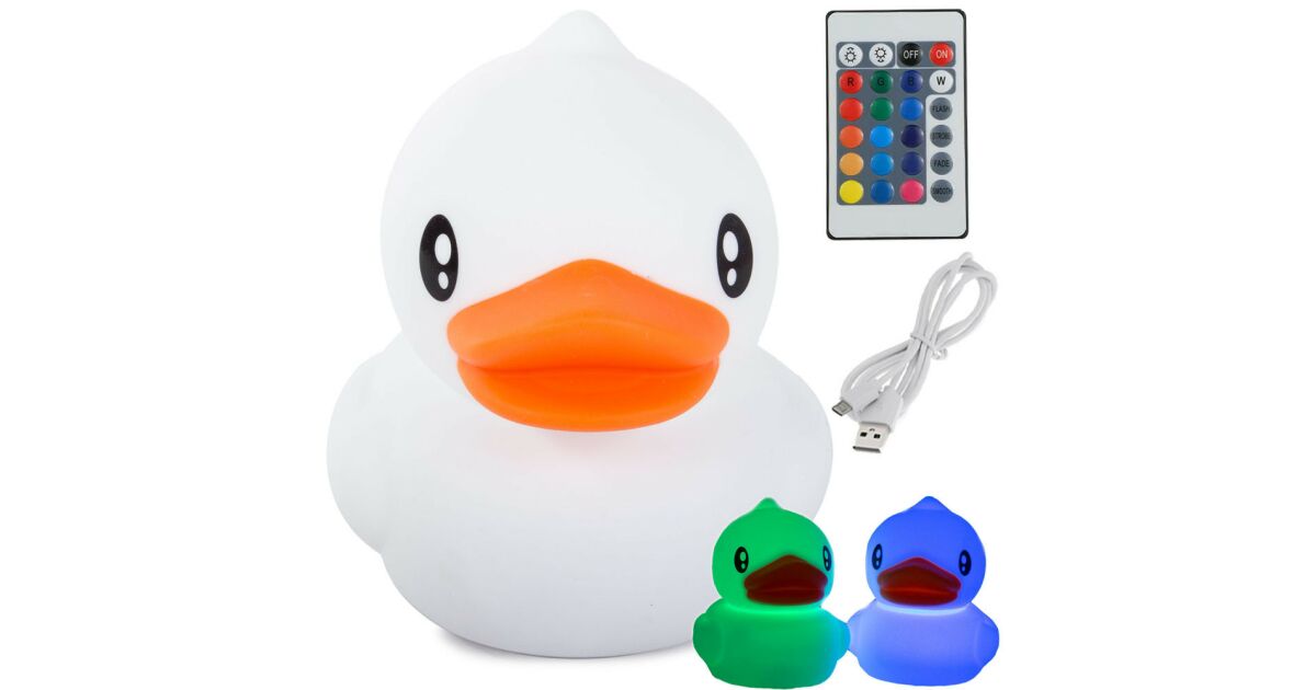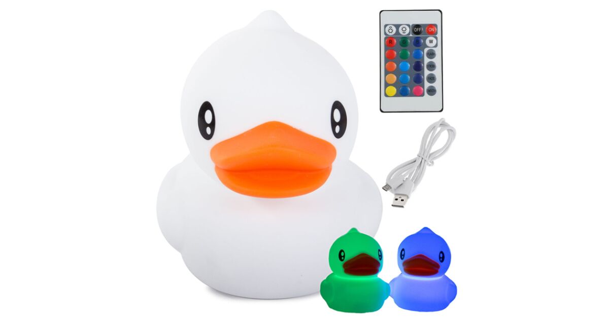 This cute, silicone rubber duck-shaped night light is perfect for children who are afraid of the dark. It's soft, pleasant to the touch, and also functions as a cuddly toy. The remote control allows you to easily adjust the light color and intensity, making it perfect for breastfeeding too.
