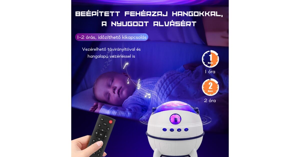 Set the mood with this multi-functional galaxy projector and speaker, which will enchant you and your family with its stunning light show and relaxing sounds. Ideal for evening relaxation, putting kids to sleep, or creating a romantic atmosphere.