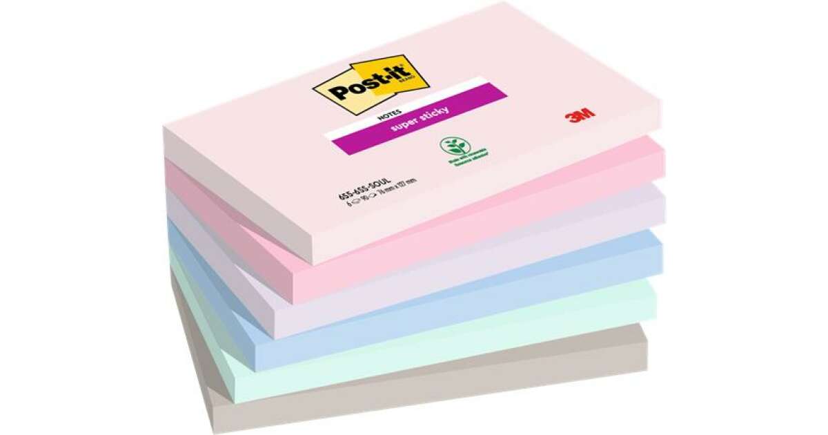 3M POSTIT Self-adhesive notepad, 76x127 mm, 6x90 sheets, 3M POSTIT "Super Sticky Soulful", mixed colours description of