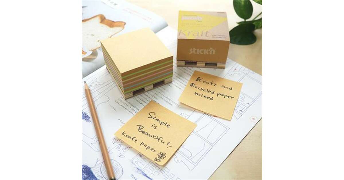 -StickN KraftCube 76x76mm 400-sheet recycled colored self-adhesive notepad description of