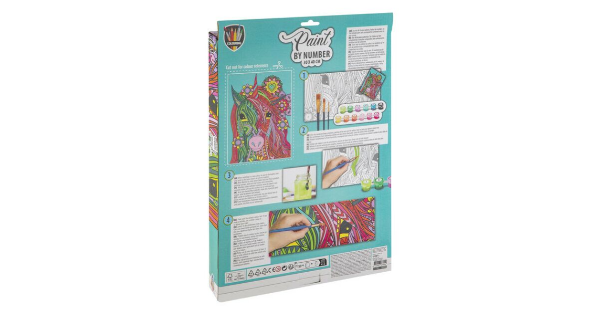 Create your own masterpiece with this fun paint by numbers kit! This 30x40 cm canvas features a beautiful unicorn that you can paint using 12 vibrant colors and 3 brushes. Perfect relaxation for adults and a creative pastime for kids! ✨
