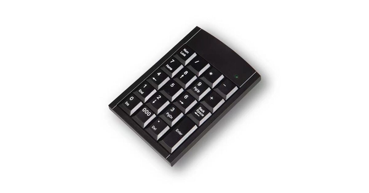 This compact, black Blackbird numeric keypad is the perfect addition to your desktop computer or laptop. Speed up your number entry with its easy-to-use numeric keys. Ideal for data entry, calculations, or any task that needs quick number input.