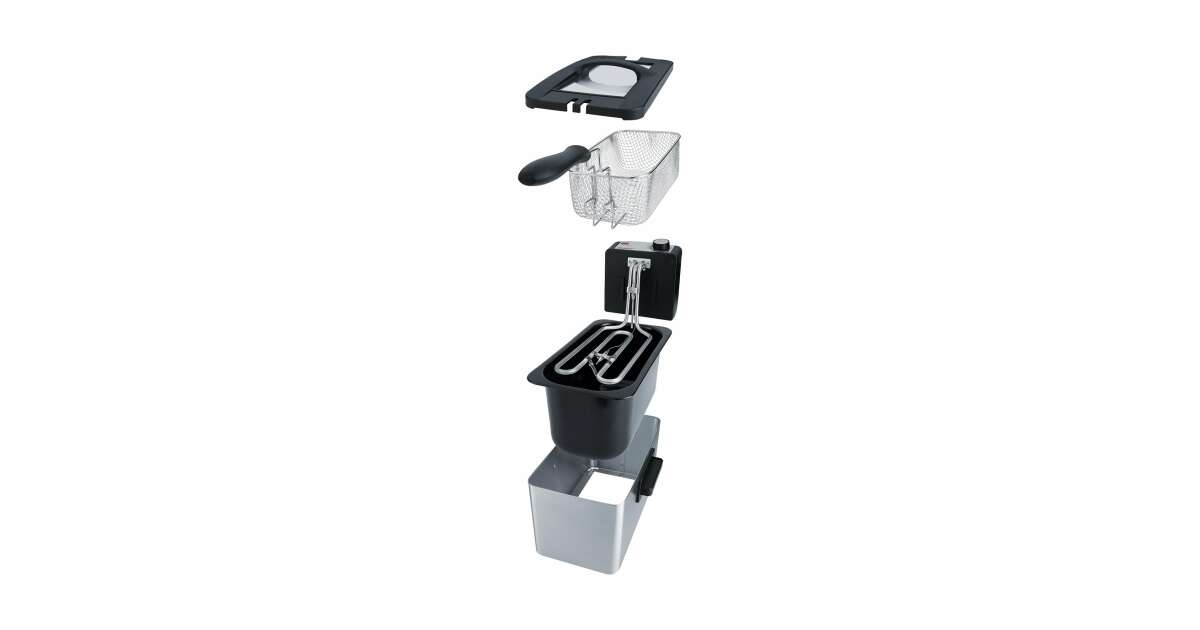 Thanks to its removable parts, the Steba DF 180 deep fryer is easy to clean. The frying basket and oil tank are also dishwasher-safe.