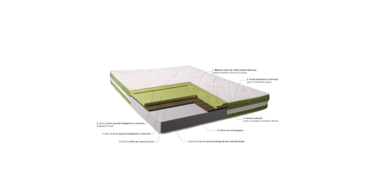 Best Sleep Vitality Bamboo Orthopedic Mattress 12+2+6 memory foam, with replaceable bamboo cover, 3D airflow, coconut fiber, quilted, 90 x 200 cm