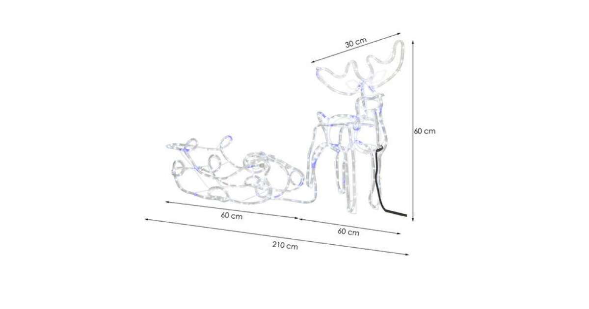 - Size: Total length approx. 210 cm, reindeer height approx. 60 cm