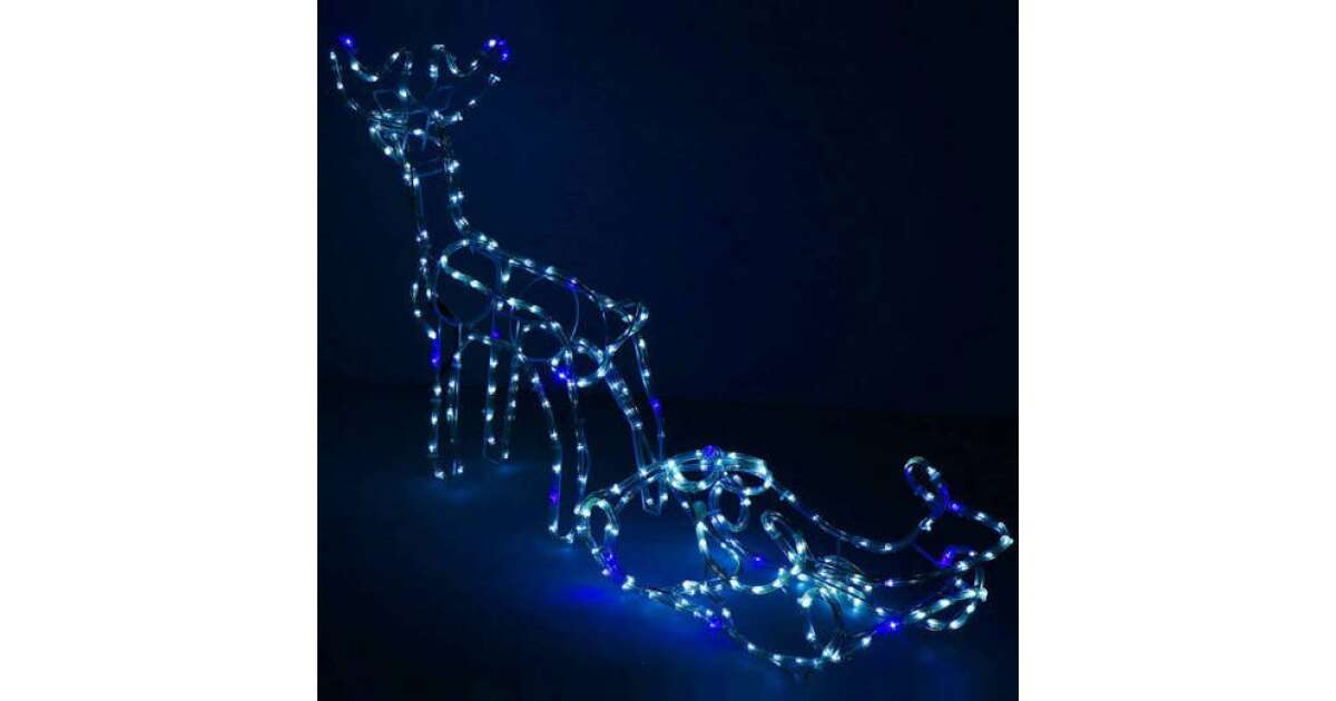 Springos Illuminated Reindeer with Sleigh LED 150 cm, Cool White description of