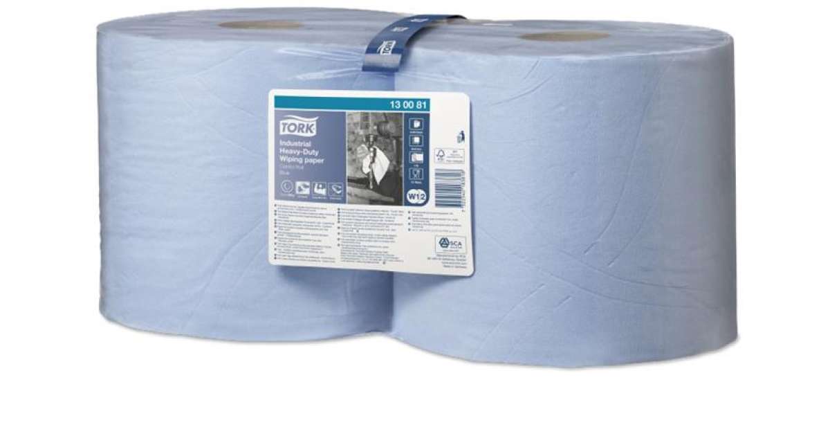 -TORK Wiping paper, rolls, 26,2 cm diameter, W2 system, 3-ply, TORK "Industrial heavy duty", blue description of